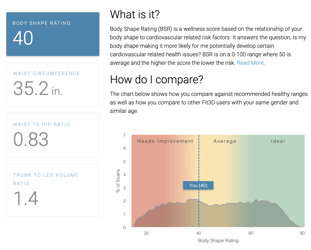 We worked with leading universities to develop a health score metric based on your body shape, which is directly inversely proportional to visceral fat. We call this your Body Shape Rating.